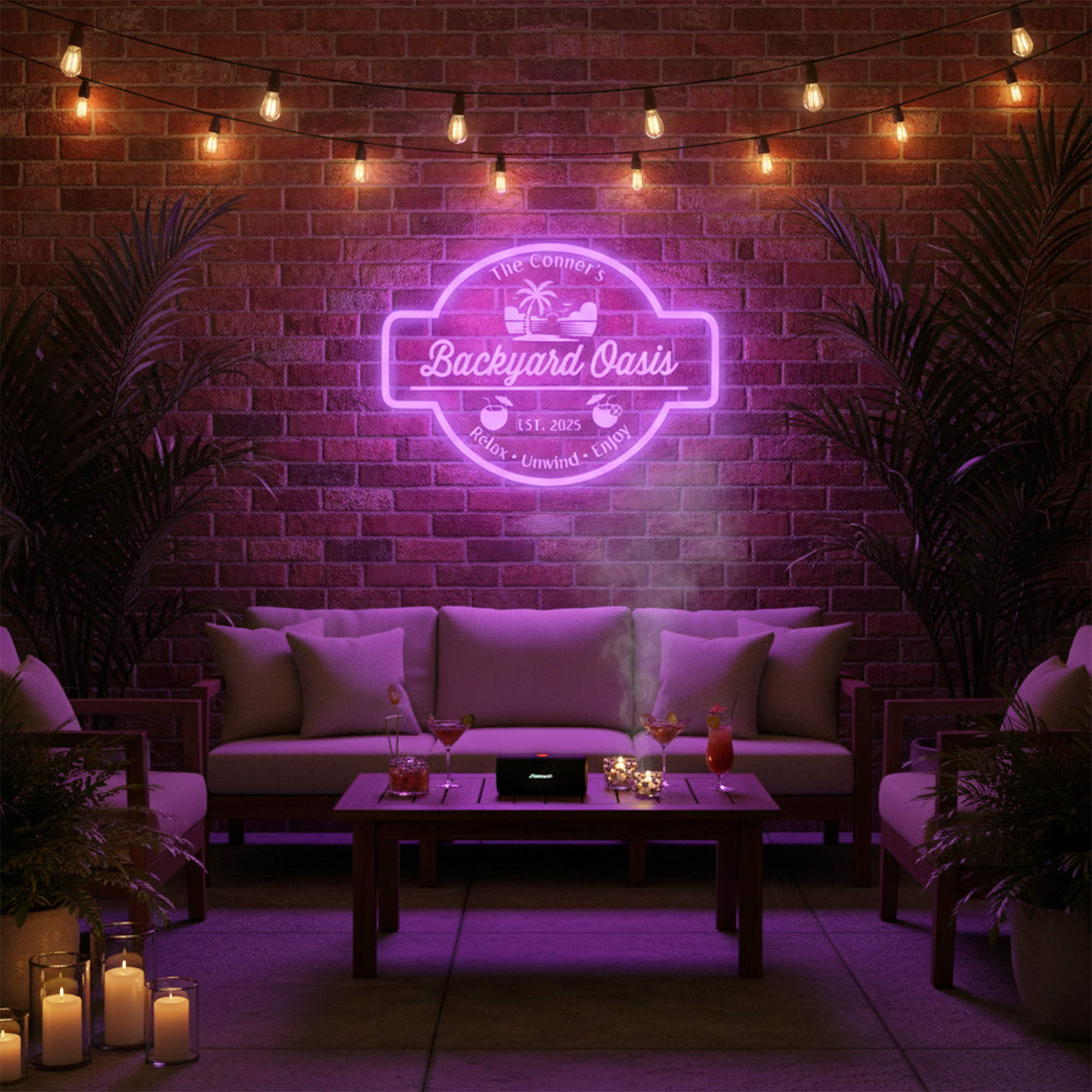 Escape to your own personal retreat with the Personalized LED Color Changing Acrylic Backyard Oasis Sign. Featuring serene, oasis-inspired graphics and your custom text, this eye-catching sign brings a peaceful, laid-back vibe to any backyard, garden, or outdoor lounge. The smooth, color-shifting LEDs cast a soothing glow—perfect for evening unwinding, intimate gatherings, or enjoying a quiet drink under the stars. Crafted from durable acrylic and made to impress, this personalized sign is the ideal finishing touch for turning your backyard into a true oasis of relaxation.