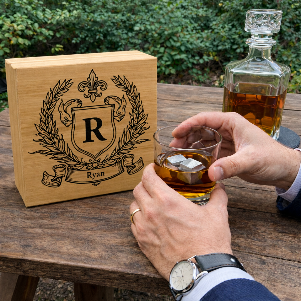Simply freeze the stones until ice-cold, then drop them into your favorite drink for a smooth, undiluted sip every time. The bamboo case can be laser engraved with your custom design, logo, or name—making it an exceptional gift for whiskey lovers, groomsmen, or anyone who appreciates a refined pour.
