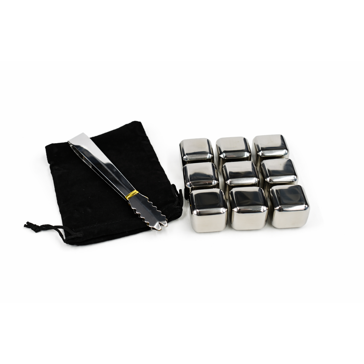 - Includes: 9 stainless steel chilling stones, tongs, and a velvet storage bag